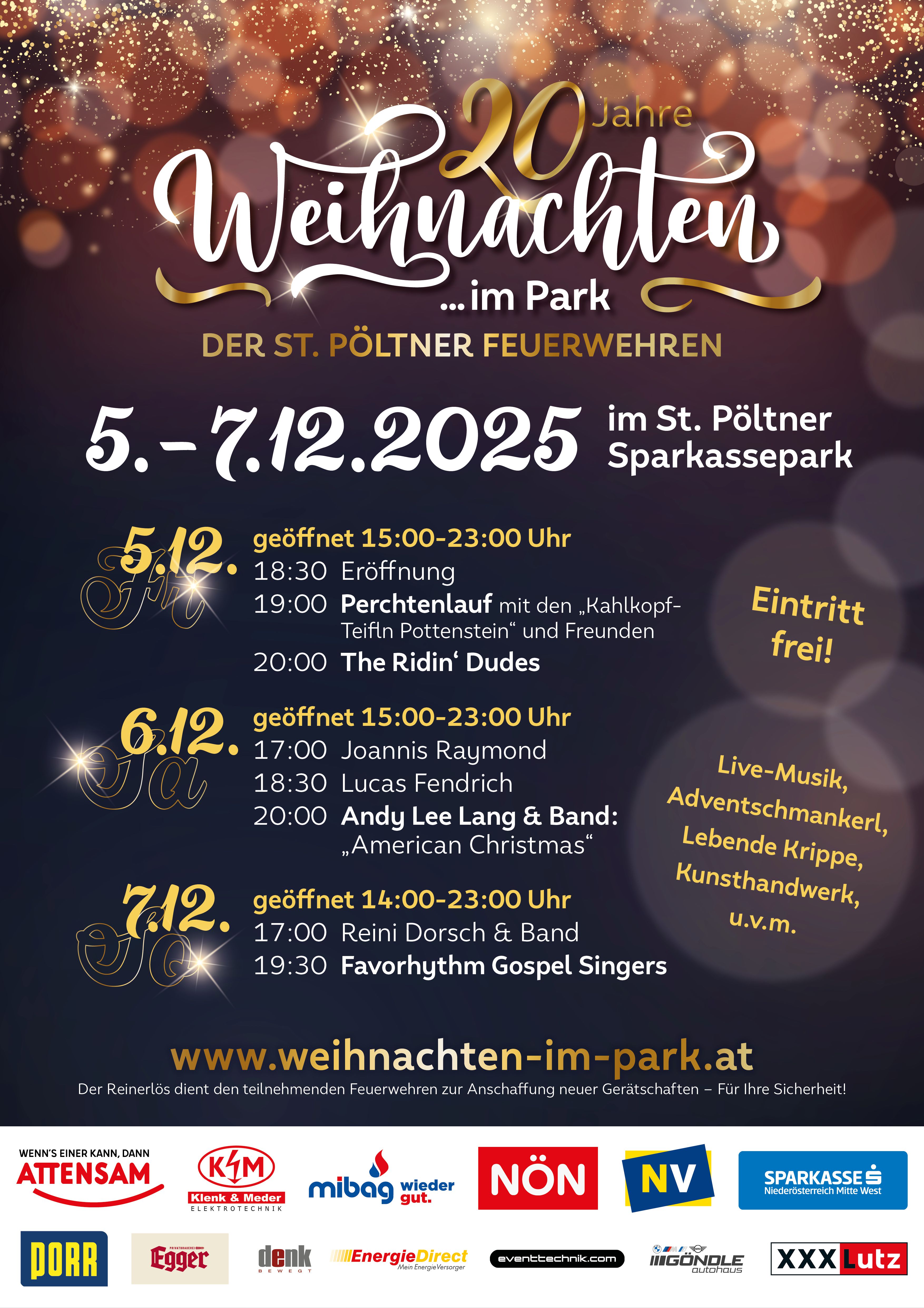 Kunst und Kulinarik, Top-Acts und tolle Stimmung, Besinnlichkeit und Besonderes: Heuer feiern wir 20 Jahre *Weihnachten im Park*!